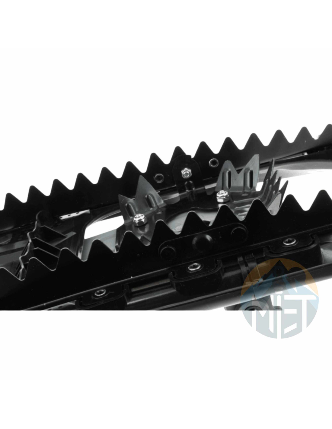 Raíles transversales en acero dentado asociados a una mandíbula delantera compuesta por 10 garras de acero