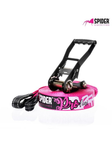 Spider slacklinesEl Pro de Spider Slacklines es una línea con una tensión muy dinámica pensada para poder entrenar y aprender los mejores movimientos y trucos.
