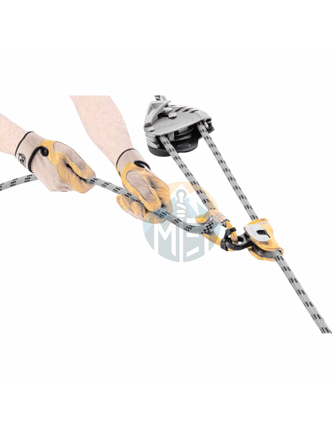 - Construcción específica (alma de poliamida y funda de poliéster) con un trenzado que permite limitar el aplastamiento de la cuerda bajo carga pesada.