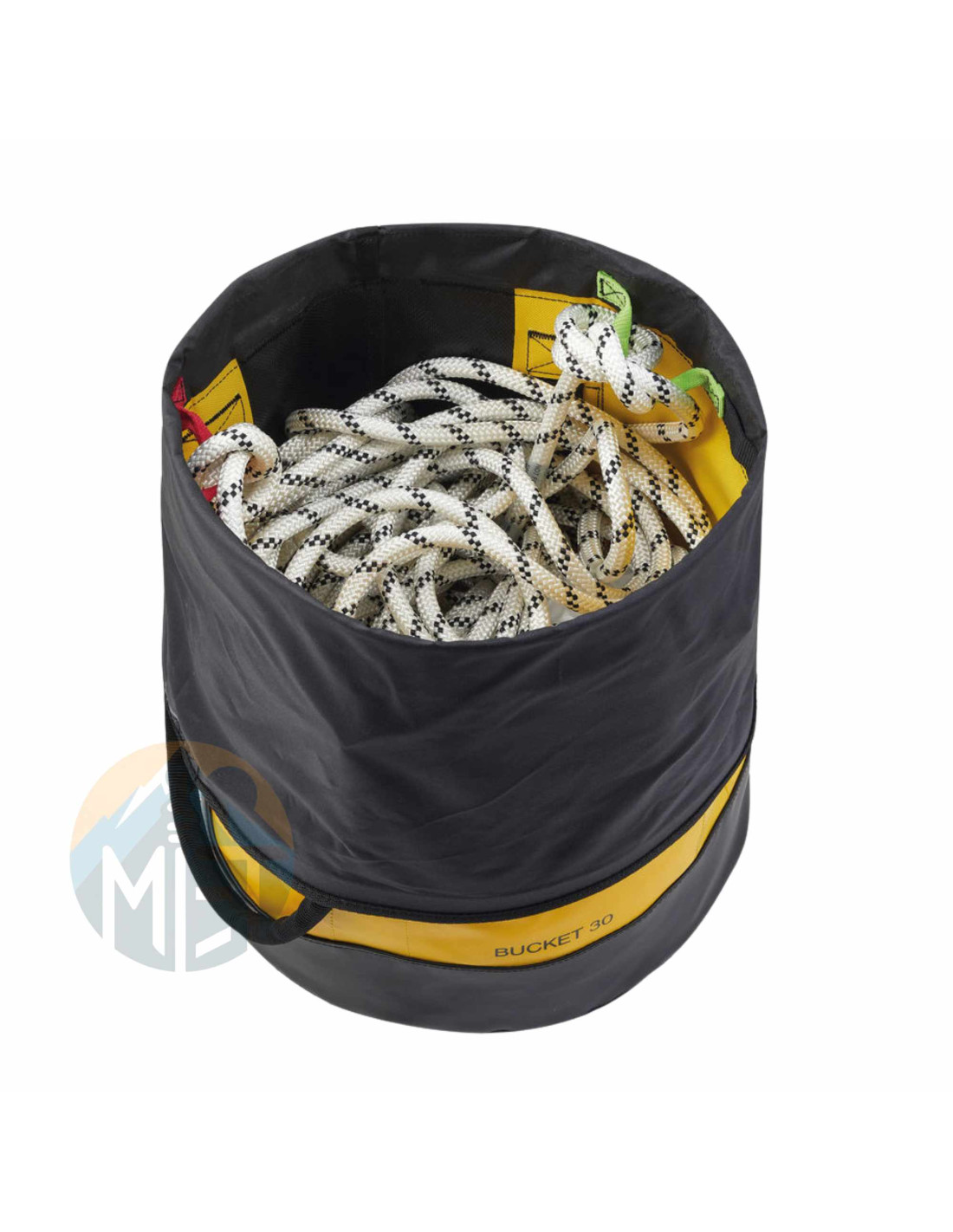 Simple y robusta, la saca para cuerda BUCKET 30 permite guardar hasta 115 metros de cuerda de 11 mm de diámetro. Autoportante, mantiene la forma, incluso cuando está vacía para facilitar el acceso al interior de la saca. Dispone de tirantes acolchados para un porteo confortable, un bolsillo exterior para guardar efectos personales y una zona de personalización para identificar rápidamente el contenido. Su construcción con lona de TPU permite una utilización de regular a intensiva.